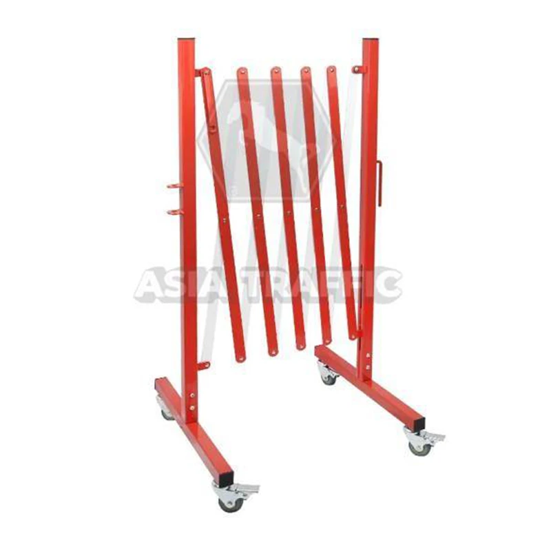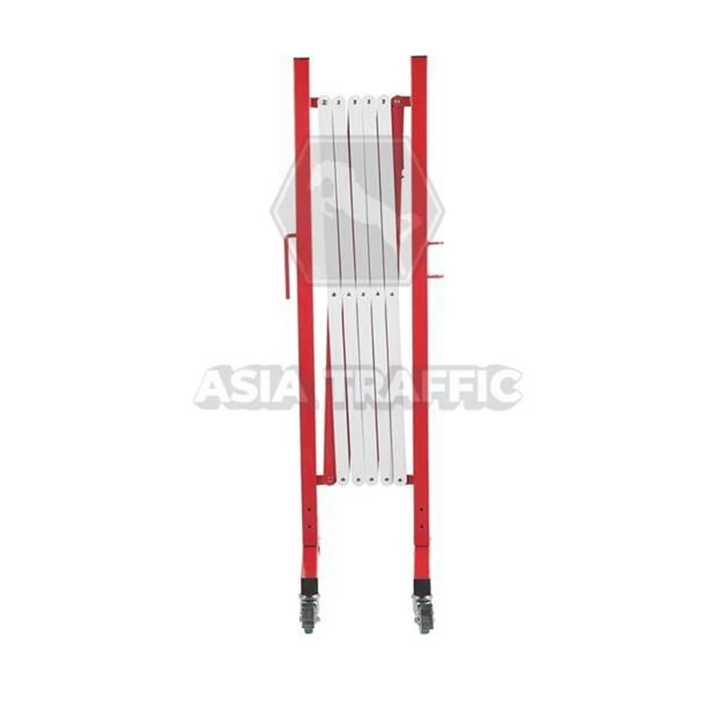 แผงกั้นจราจรยืดได้ มีล้อ สีแดงขาว